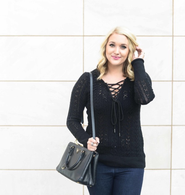 Black Lace Up Sweater